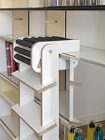 wall book and media shelves with sliding accessories for the photographer Florian Kleinefenn