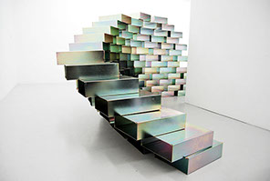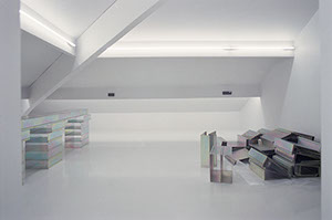 Designed as part of the renovation of the CNEAI (national centre for publishing and printed art), these cases are intended to hold the FMRA collection. Modular units for both storage and construction, they play a full part in cneai exhibition design and can be used by artists in residence at the centre. They are held together magnetically, increasing options for cantilevered layouts and varied structures. In split form they can be used to show objects, exhibit works and present artworks on paper in a new way. Easily packed down and with no dimensional constraints, the system is perfect for traveling exhibitions and when moving sites.