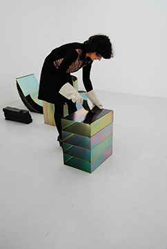 Conçus dans le cadre de la rénovation du CNEAI (centre national de l’édition et de l’art imprimé), ces étuis sont destinés à protéger la collection FMRA. À la fois modules de rangements et de construction, Ils sont de réels outils de scénographie à disposition du cneai, mais aussi des artistes en résidence au centre. Ils s’assemblent par force magnétique, ce qui ore des possibilités de porte-à-faux et de structure. En se dédoublant, ils permettent de déployer les objets, d’exposer les oeuvres et de présenter la matière artistique papier sous une nouvelle forme. Facilement compactables et sans contraintes dimensionnelles, le système se prête au expositions itinérantes et au déménagement.
