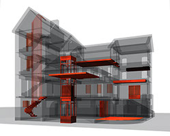which is more suited to the conventional architecture of the Maison Levanneur and for displaying the works, most printed on white paper. All added elements should be identifiable in themselves and autonomous within the existing building, alleviating its awkwardness.
