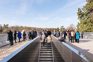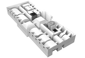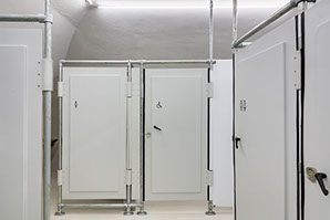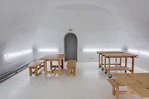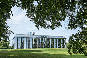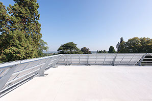 The arts centre is accessed by an entrance in the 16th century basement, last vestige of the original château. Visitors find all the museum’s ancillary functions here, before emerging into the two superimposed spaces devoted exclusively to exhibitions. The final alteration was the conversion of the roof into a terrace, creating a third, outdoor exhibition space with panoramic views of the park, the nearby lakes and the surrounding countryside.
