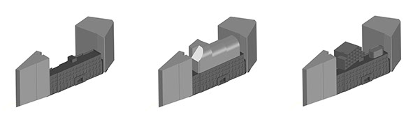 L’ensemble de ces raisons ont dévié le développement du projet vers une solution alternative et inattendue, celle d’une structure autonome, qui en se conjuguant à la première, complète l’ilot et se met au service du programme. Un bâtiment qui se retourne et s’expose aux voies ferrées, s’élève à la hauteur de ses voisins et s’ajoute à la collection des objets posés dans le tissu urbain lâche et hétéroclite de la ceinture parisienne.