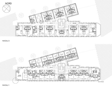 The particularity of this projects lies as much in its urban footprint as well as in the presence and nature of the existing building. On the one hand, the operation was the last one on the site and the programs that enclosed it, by orienting the views at 360 °, did not allow a simple extrusion of the existing base as in a typical urban plot. On the other hand, a proper facade of the plot had not yet been designed since the old nursing school was exposed and open onto the place of la porte de Vanves while its opposite facade was set back from the Vercingétorix route.