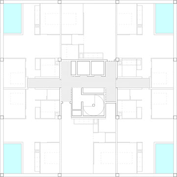 A ce stade, notre volonté est de présenter un potentiel plutôt qu’un projet, un ensemble de possibilités et d’explorations dont le choix s’opèrera à l’issue des échanges avec les acteurs du projet. Au-delà de la phase de conception, nous comptons prolonger cette flexibilité structurelle et organisationnelle à plusieurs échelles de temps : au stade de l’affectation dans la répartition et l’équipement des logements en accord avec les acquéreurs identifiés, notamment ceux d’HAB’X, pendant l’exploitation, dans la connexion optionnelle entre locaux d’activité et logements des SOHO et dans une projection plus lointaine, en cas de changement de destination du bâti.