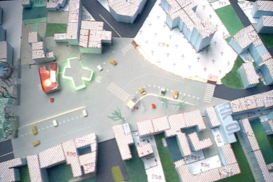 implantation of a pharmacy and a doctor’s cabinet in town square