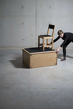La constitution de la chaise d’origine faite d’une ossature massive et d’un mince plateau de remplissage pour l’assise devait cependant nous extraire de nos précédents modèles réalisés sur la base de panneaux de contreplaqué prédécoupés assemblés. Le système à ossature se révélera plus économe en consommation de matière, plus léger mais s’avèrera beaucoup plus complexe dans l’élaboration d’assemblages à trois directions qui restent démontables. On est proche des assemblages de charpente japonaise à une échelle réduite. Malgré un appel d’offres public, la fabrication du mobilier ne s’avérera réalisable que par un seul atelier en France, tant la petite taille des pièces, la précision et la complexité des découpes nécessite les machines les plus perfectionnées et une connaissance très sûre de leur fonctionnement alliée, fait encore plus rare, à celle de l’ébénisterie pour le réglage définitif des assemblages sur la base de prototypes.